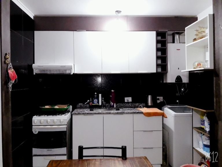 DISTRIBUCIÓN: cocina - comedor amplia, muebles en un estilo moderno. 2 dormitorios con sus respectivos placares, 1 baño recubierto en su totalidad con cerámicos y artefactos nuevos. cochera cubierta, patio.